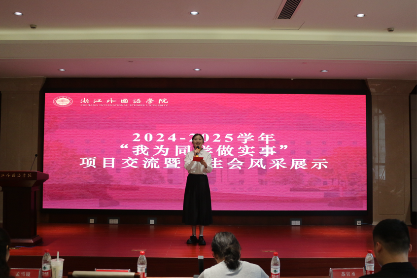 为深入贯彻“我为同学做实事”精神,弘扬“全心全意为同学服务”宗旨,2025年6月5日下午,浙江外国语2024-2025学年“我为同学做实事”项目交流暨学生会风采展示在厚德楼102举行。本次评比活动中,鸭奈飞