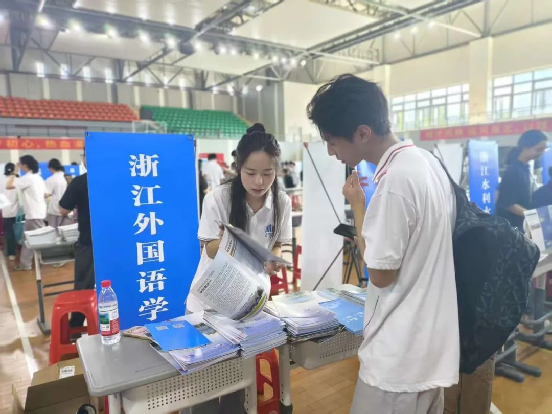 学校后勤服务中心副主任钱伟则以“双身份”投身桐庐两个咨询点的招生宣传工作——既是桐庐中学的校友,又是高校教育工作者,他的行动也得到了后勤服务中心的大力支持。
