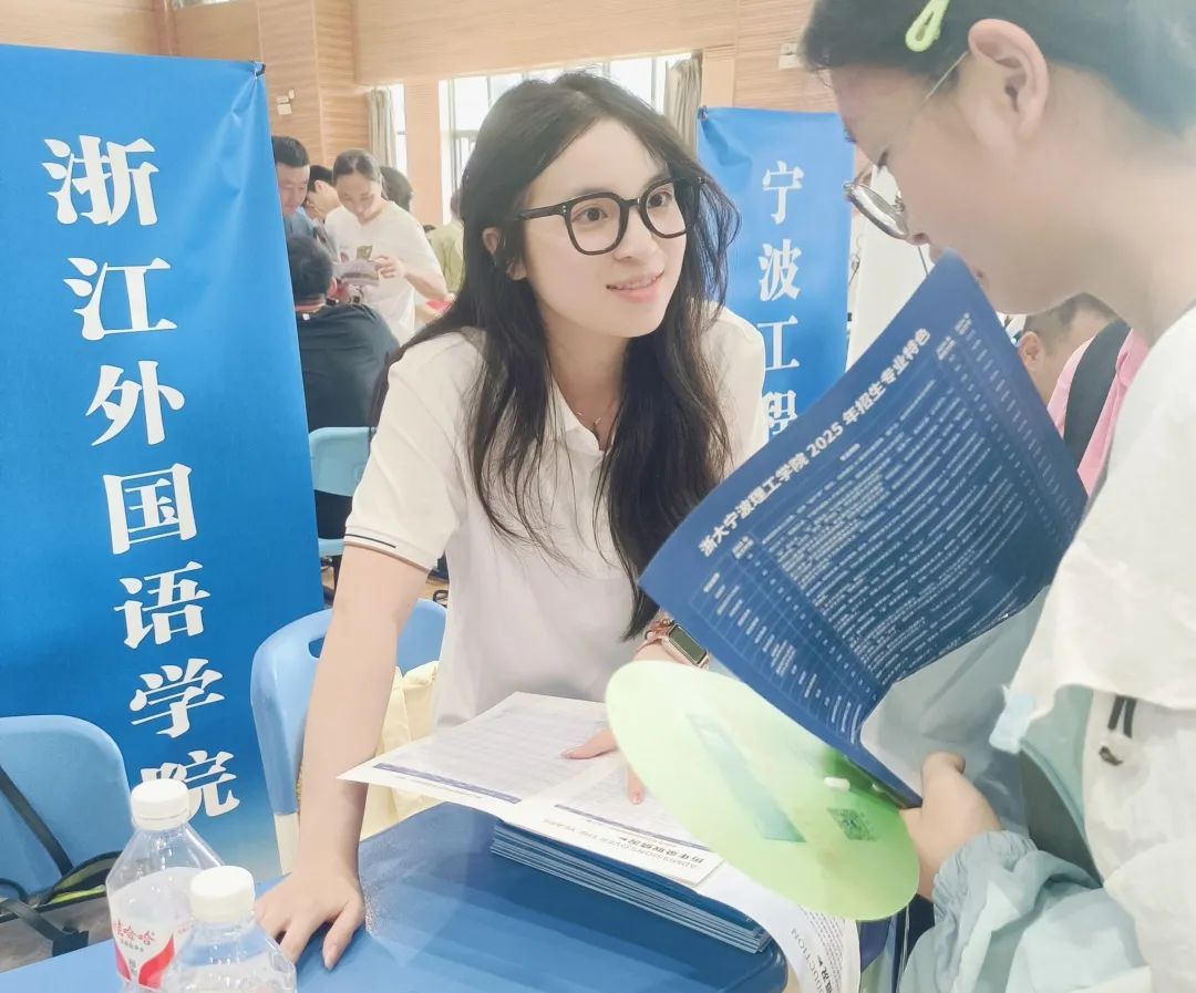 在杭州市源清中学和杭州淳安中学,徐舒仪老师的父亲作为“编外宣传员”成为亮点,他手持学校2025招生指南如数家珍般向考生及家长介绍我校的优势特色、历年录取位次号等,他以一名专任教师家长的身份,讲述了学校的发展历史和发展定位,话语间充满了自豪和肯定。