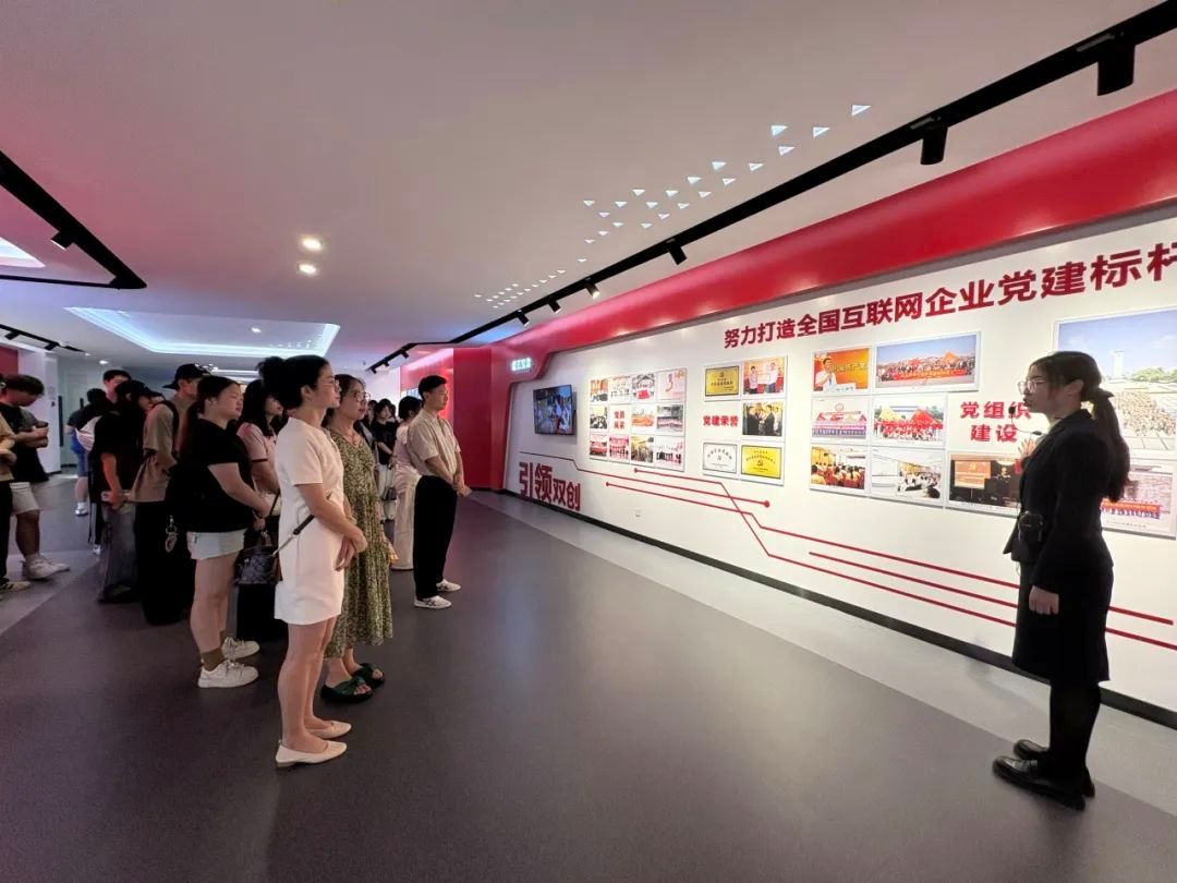 在集团展厅,师生通过"硬核发展""文化烙印""荣誉勋章"三组关键词,系统了解企业从西湖畔创业团队到全球数字平台服务商的蜕变历程,感受"七朵云"核心业务矩阵的技术积淀与"敢为天下先"的浙商精神。