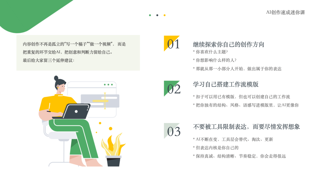 7月4日晚,拥有五年自媒体运营经验的博主“潘潘”通过线上会议带来题为“AI创作速成:从灵感到短视频的一键生成”的分享。她全面梳理AI内容生产流程,从写作构思、文案生成,到图像辅助、语音合成及视频制作,结合具体案例现场演示,使学生切实感受AI技术在内容创作中的应用前景与实践潜力。