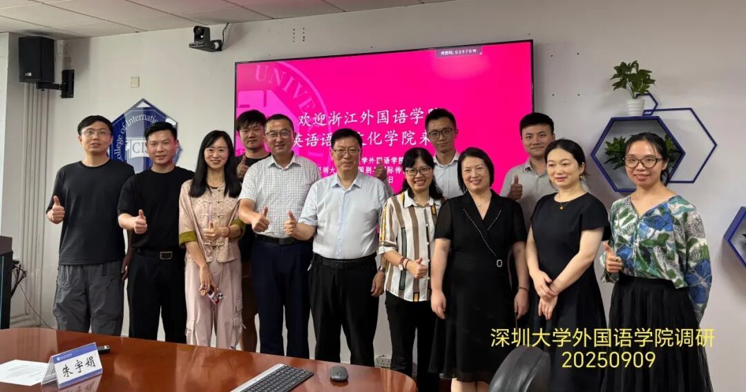 、深圳大学外国语学院等单位,就学科专业建设、人才培养、师资队伍、国际交流、党建思政等方面开展交流。学院副院长郑淑贞,党委副书记、纪委书记欧万彬,翻译传播系学科专业负责人黎昌抱,外语教育系科研主管刘懿,区域国别与商务英语系教学主管郭安琪和科研主管赵歆,人文智能研究所所长俞佳,办公室主任朱宇娟,学工办负责人顾蒙等参加调研。