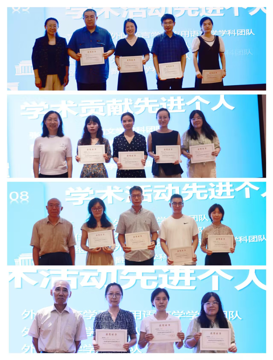 会上还举行了学术贡献先进个人和学术活动先进个人表彰仪式,对上一年度为学科团队建设夯实基础、为学科发展注入动力的教师予以表彰,并颁发奖状。