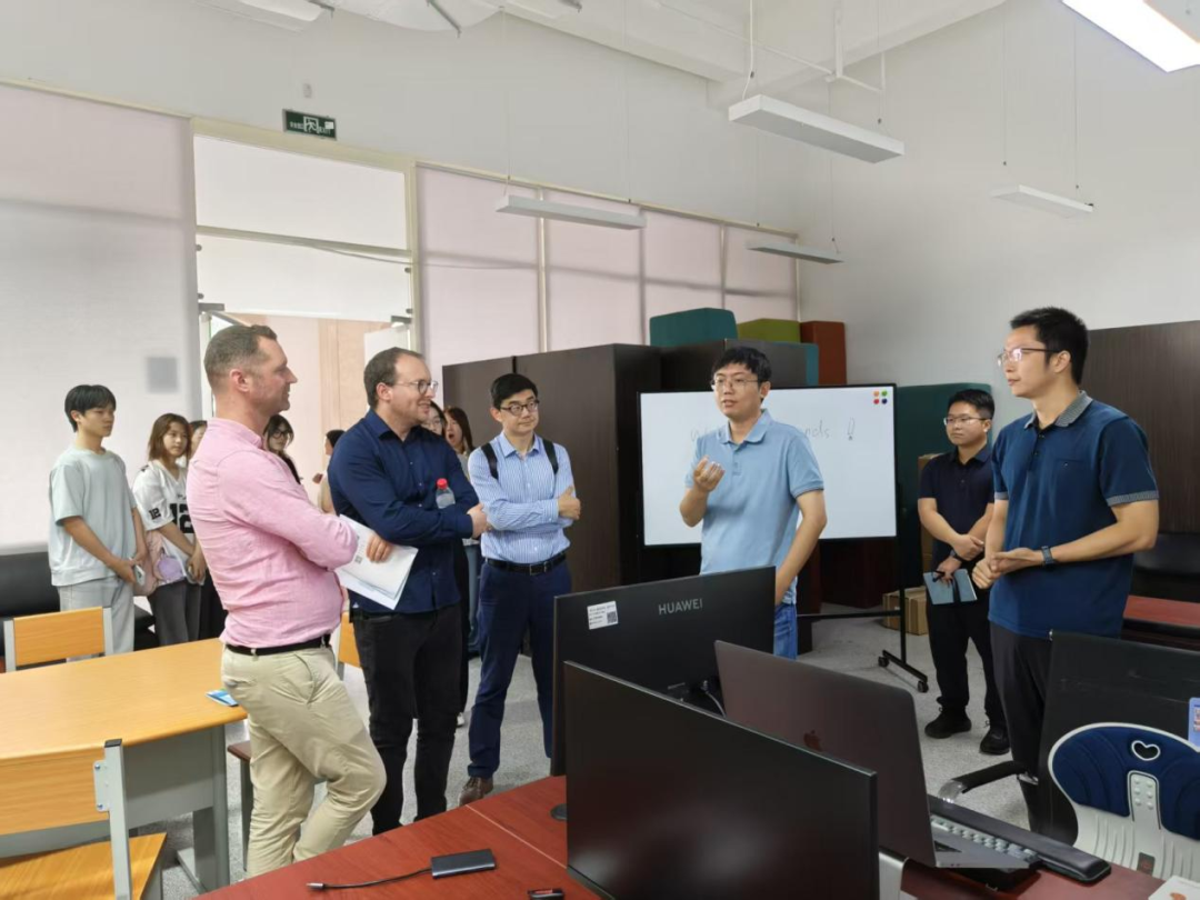 随后,俞佳陪同澳方专家参观了人文智能研究所,并展示了“小紫苏”的最新研发成果。同时,俞佳结合自身技术背景,探讨了AI在英语教学中的应用。