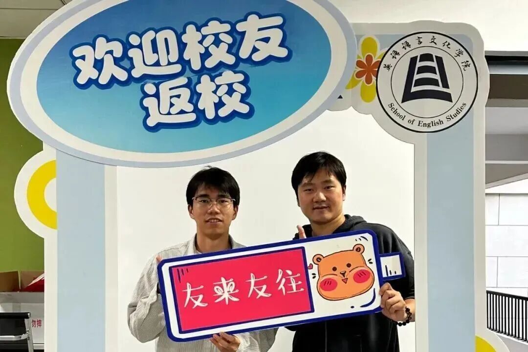 秋风送爽,情系英文。校友们在学院打卡区前留下微笑与祝福,快门声落,将此刻定格为永恒与旧日的自己重逢一笑,也与母校七十载的深厚文脉深情相拥。