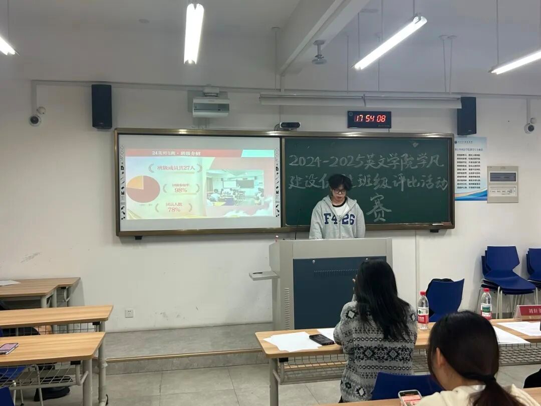 优良学风传承,激发班级集体奋进活力,引导学生养成严谨治学态度,11月10日下午,学院于融A105顺利开展2024-2025学年学风建设优胜班级评选活动,为全院班级搭建了展示成果、交流经验的优质平台。