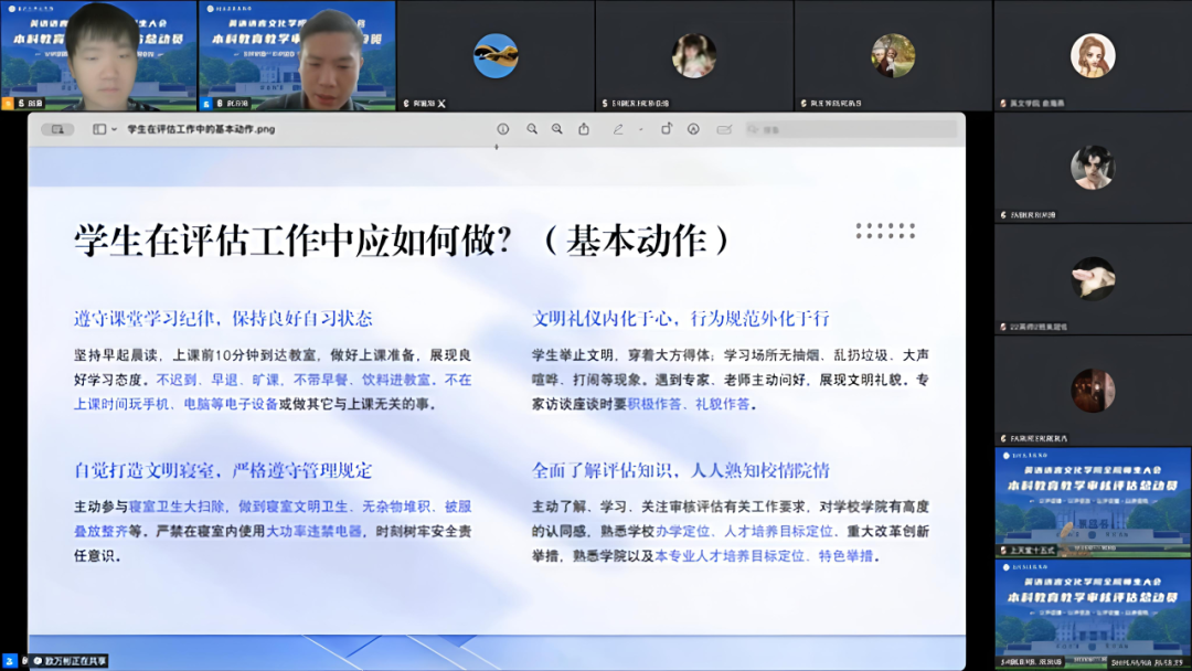 迎评工作吹响了冲锋号。从学生行为规范到专业特色建设,从学科智能升级到全局战略部署,全院正以时不我待的紧迫感和使命感,凝聚起迎评促建的强大合力。