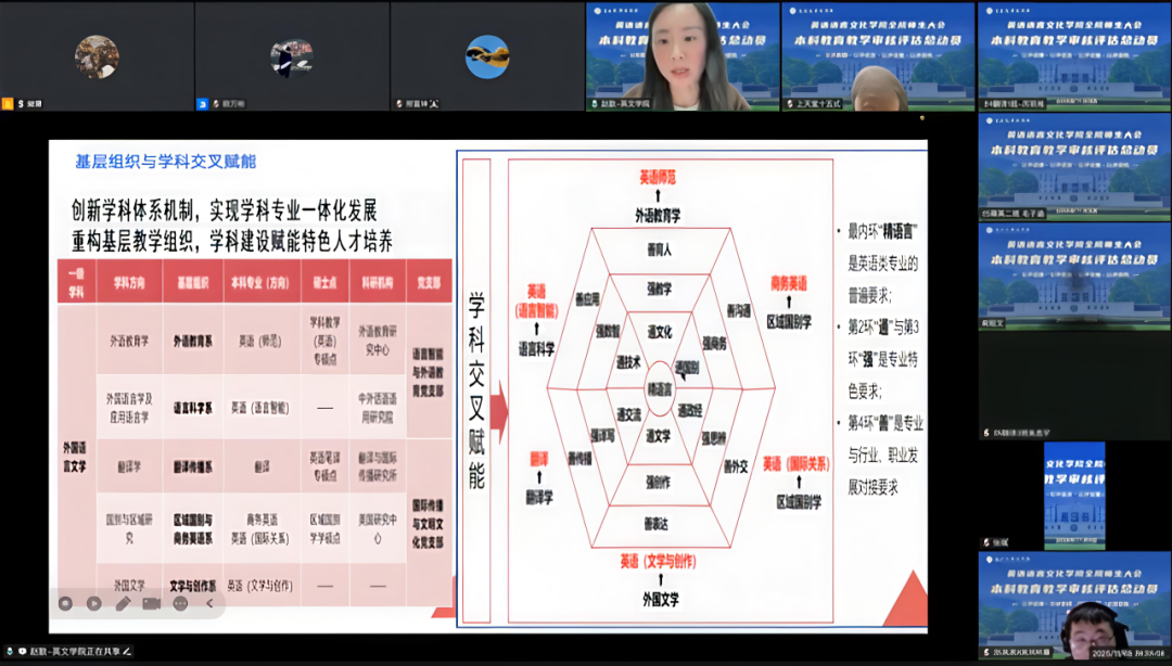 学院学术副院长赵歆从专业建设、本科教学、学术特色维度,详解审核评估核心内容。她紧扣学校第三次党代会“建设国际知名以服务新型国际关系为特色的外语名校”的办学定位,从基层教学组织、专业方向、师资团队等方面全面介绍鸭奈飞概况