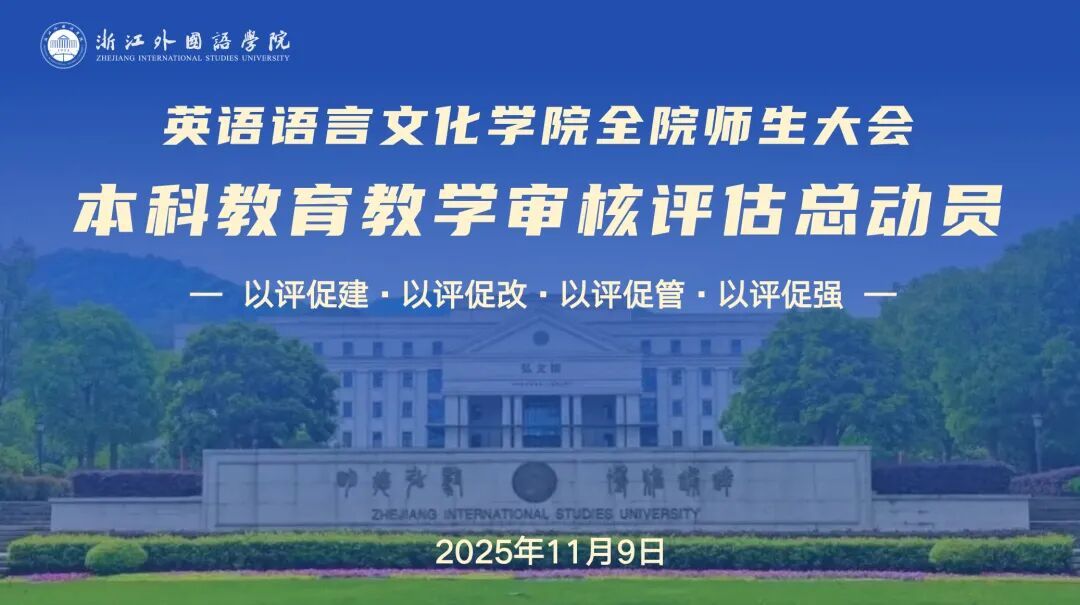院长邢富坤首先对本科教育教学审核评估进行了动员,强调了其重要性,明确迎评核心:一是锚定“外语名校、申博建大”的学校目标与“支撑外语名校建设的英文强院”的学院定位;二是打造特色鲜明的英语类专业,践行“学生中心、育人为本、智能赋能”的课程理念;三是号召全体师生以“守土有责、浙外是我家”的担当,凝聚合力推进迎评。他鼓励师生与学院紧密联结,推动学科专业的深度融合。