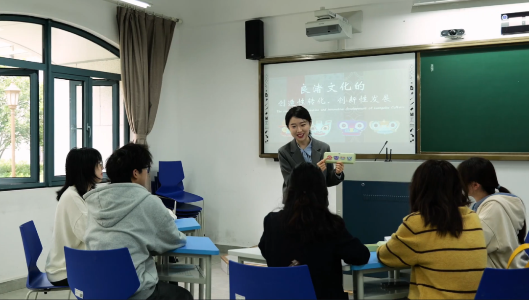 教学从良渚神徽冰箱贴入手,通过对比古代玉琮与现代文创,引导学生思考形式转变背后的文化延续逻辑。课程核心环节层层深入:首先解析器物层面,探讨神徽符号如何通过形态与功能的现代适配走进日常生活;其次衔接制度与精神层面,揭示良渚治理智慧与工匠精神如何在当代获得新的诠释与价值;最后落脚于专业实践,组织学生分组设计面向不同国际受众的双语传播方案,将文化认知转化为具体的传播能力。