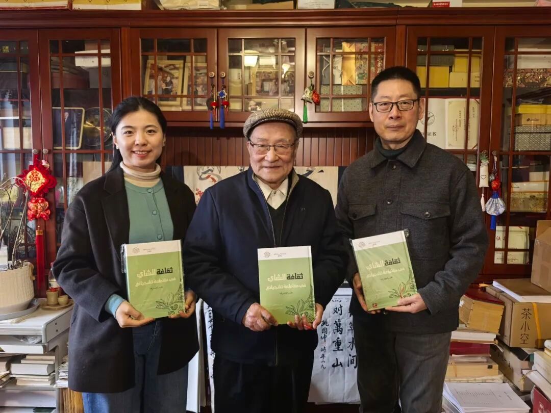 副院长郑淑贞带队拜访我国茶学领域泰斗级人物姚国坤先生,浙学精品外译项目阿语版负责人刘彬,浙学精品外译项目系列丛书之一《图说浙江茶文化》英语版译者李悦园、阿语版译者刘奕辰一行共同参加,以语言为媒介,礼敬茶学传统,旨在构筑中外茶文化交流的新纽带。