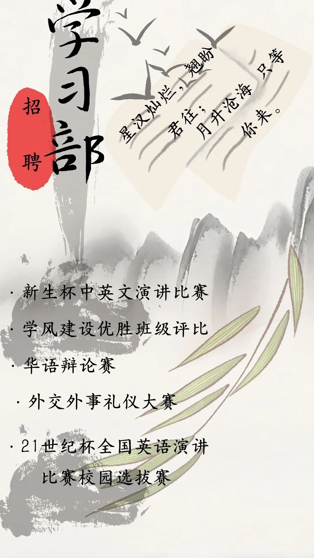 3. 浓厚的学习氛围:在各类学习型比赛中,熠熠生辉的英文学子拼搏的身影必将给你留下深刻印象,你可以学习他们的经验与方法,成为努力奋斗的一员。