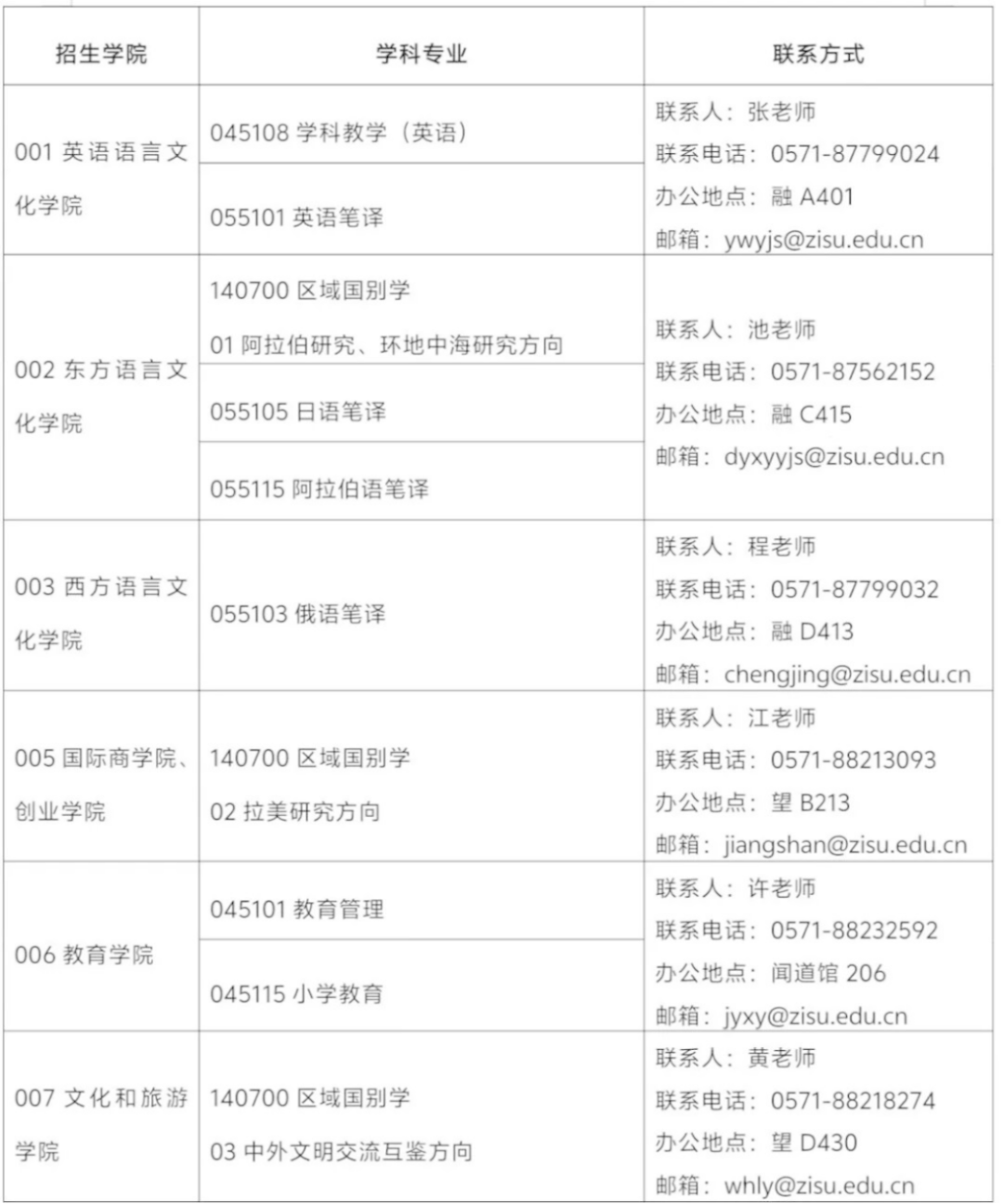 (二)各招生学院联系方式
