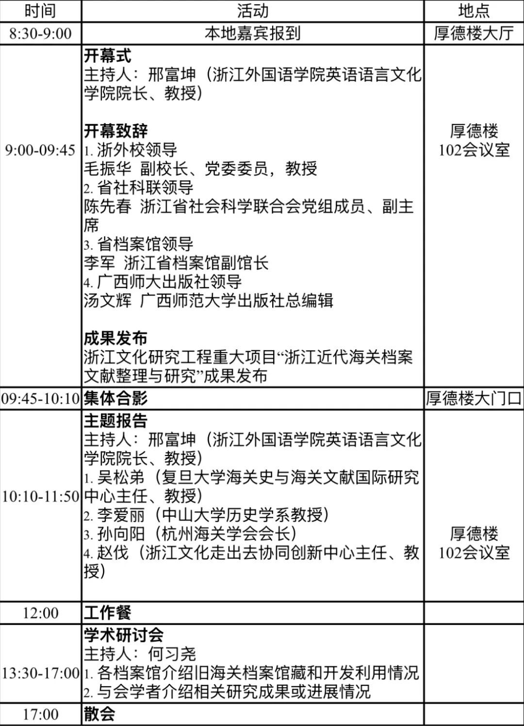 感谢您惠允出席“中国近代海关档案文献与世界记忆亚太地区名录”学术研讨会暨“浙江近代海关档案文献整理与研究”成果发布会。现将会议相关信息呈报如下: