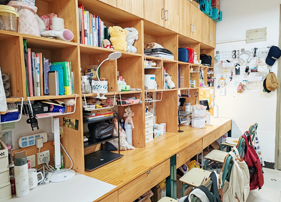 我们走的是简约风。宿舍内物品摆放整齐,地面干爽洁净,屋子宽敞明亮。为了增添生活气息,我们养了些绿植,寝室的女孩们还为宿舍配备了除湿机与香薰机。个人空间内,我们各自用自己喜欢的元素装饰桌面与柜子,让宿舍温馨又舒适。