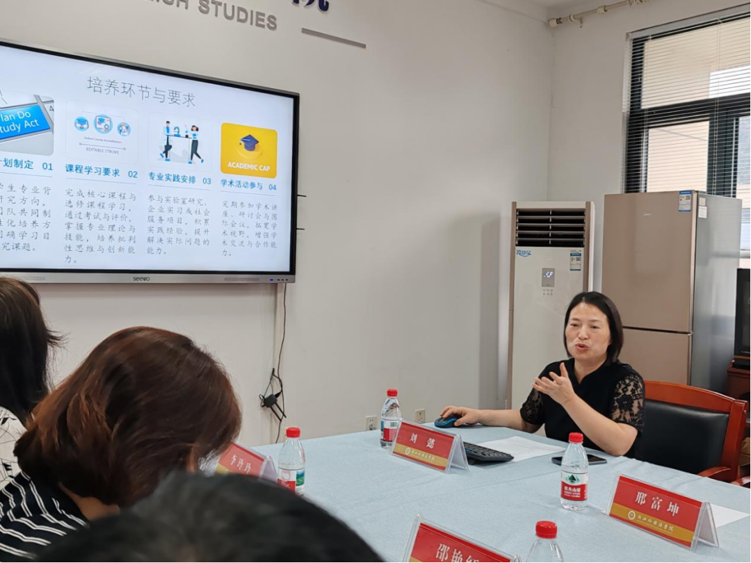 院长邢富坤,副院长郑淑贞,学科教学(英语)方向14位具有招生资格的导师以及2025级学科教学(英语)专业的9名硕士生全体参加会议,外语教育系科研主管、硕士生导师刘懿教授主持。